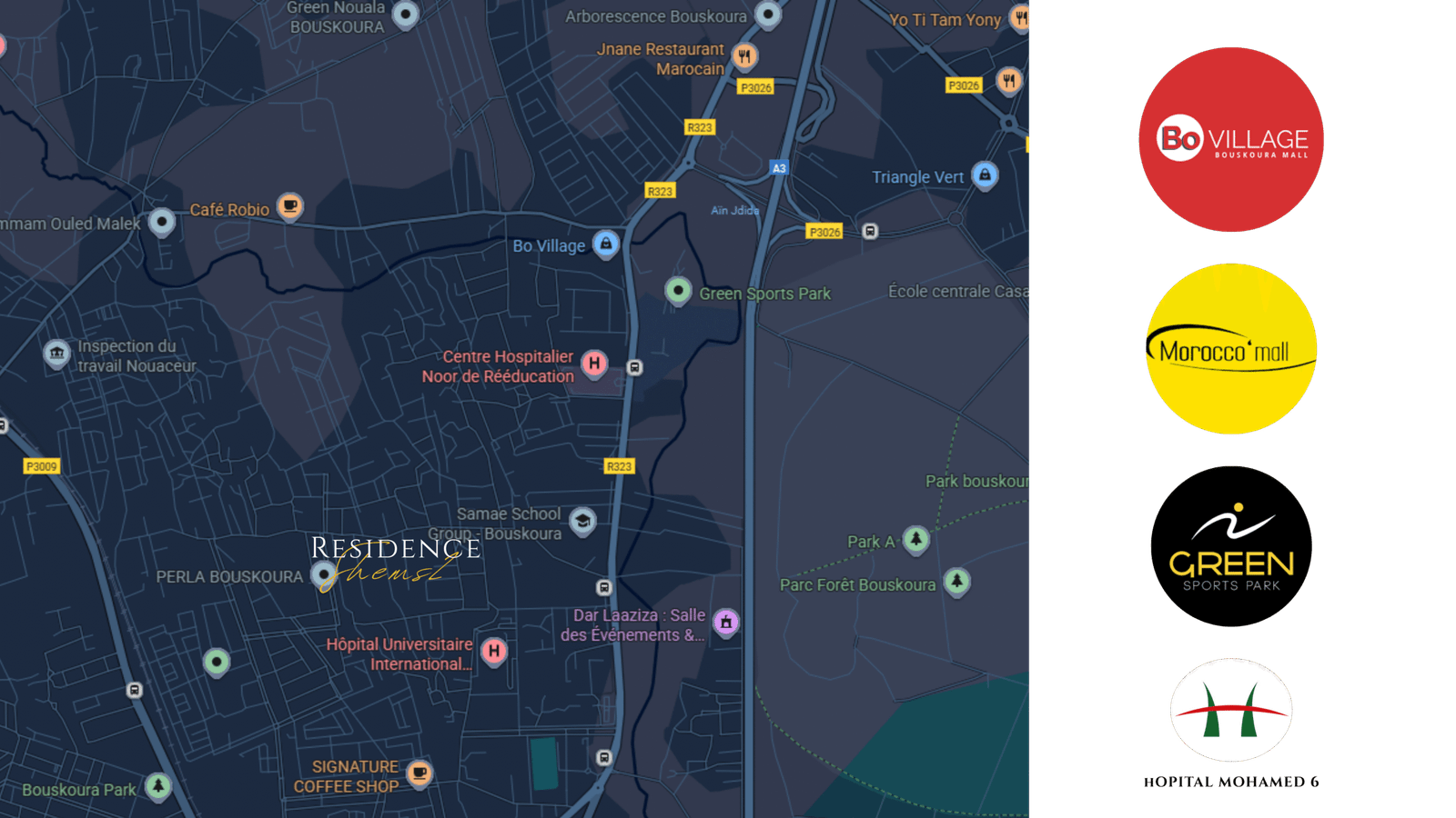 À seulement 2 minutes de la maison Jeep, la Résidence Shems2 bénéficie d’un emplacement privilégié. Située dans le quartier « Bouskoura Perla », elle est proche de toutes les commodités nécessaires pour un cadre de vie agréable.